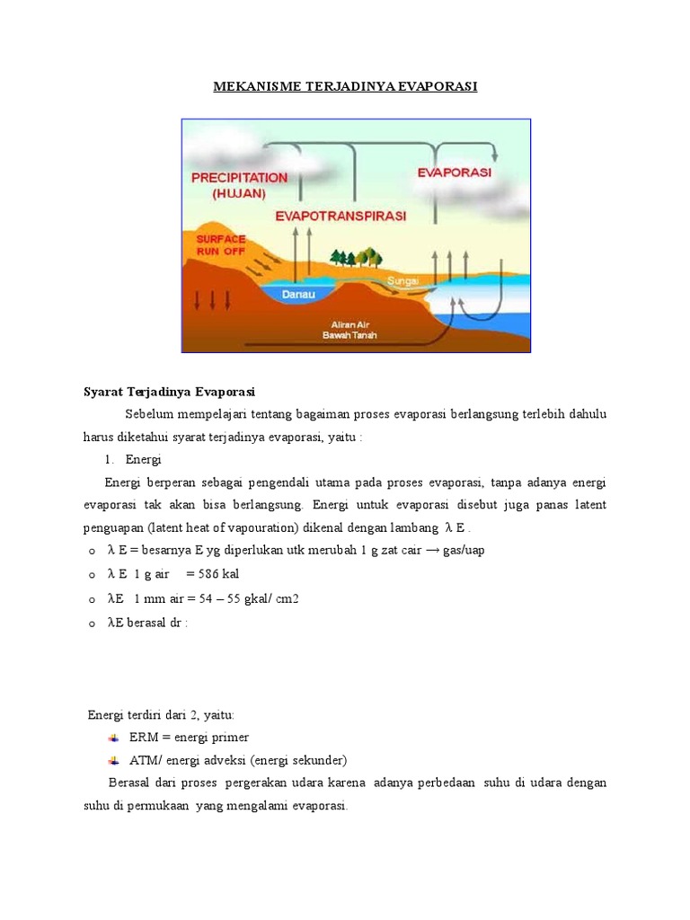 Istilah evaporasi biasanya dikenal dalam industri pangan. Proses ini adalah kebalikan dari kondensasi. Banyak sekali yang tanya susu ini di video resep puding oreo milo. Beberapa cairan menguap lebih cepat daripada yang lain pada suhu yang sama. Penguapan atau evaporasi adalah salah satu fase dalam siklus air. Pengertian evaporasi adalah proses perubahan molekul air menjadi uap air. Panas (energi) adalah faktor yang diperlukan untuk evaporasi terjadi. Proses evaporasi selalu terjadi setiap harinya. Evaporasi adalah proses perubahan molekul di dalam keadaan cair (contohnya. Selain penjabaran di atas, contoh sederhana dalam proses evaporasi ini adalah terjadinya hujan. Evaporasi tidak sama dengan pengeringan. 1 bab ii pembahasan 2.1 definisi evaporasi evaporasi adalah salah satu komponen siklus hidrologi, yaitu peristiwa menguapnya air dari permukaan air, tanah, dan bentuk permukaan bukan. Air) dengan spontan menjadi gas (contohnya uap air).